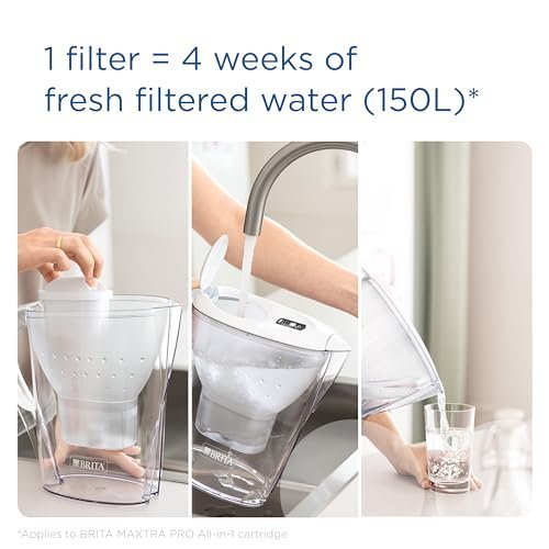 - Included: 1x BRITA Marella water filter jug in Graphite, 3x MAXTRA PRO ALL-IN-1 filter cartridges which each last 150L and are recyclable.