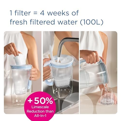 Details: Trust the original, BRITA filtered tap water not only tastes pure and fresh, but also reliably protects kitchen appliances from Limescale, helping your kettle and coffee machine last longer. BRITA is a sustainable and cost effective alternative to bottled mineral water. Release the full aroma, BRITA provides you and your family with freshly filtered water and will give you fuller flavoured, better tasting cold and hot drinks. Innovative 4-stage Maxtra Pro filtration with ion exchanger pearls and natural activated carbon from coconut shells, Specifically useful in regions with hard to very hard water, the Maxtra Pro Limescale Expert reduces limescale +50 Percent more effectively than the BRITA Maxtra Pro All-In-1 cartridges and reduces taste-impairing chlorine and metals like lead and copper. All BRITA cartridges are recyclable – check out more on the BRITA website.Twice as smart! With the Maxtra Pro, BRITA offers you two water filtration experts, the all-rounder All-In-1 and the Limescale Expert for extra appliance protection with +50Percent more effective limescale reduction than the All-In-1 cartridge. Be part of the change. Because every plastic bottle counts. With every BRITA product, you are actively helping to reduce the number of plastic bottles that could end up in waste. The carbon footprint of BRITA filtered water is already up to 25x less than for bottled water. But we are constantly working on reducing it further. We believe that the shift to using more sustainable materials in our products, like bio-based plastics, plays a critical role in reducing our dependency on fossil fuels and helps to reduce carbon emissions. BRITA provides sustainable drinking water solutions and is the world’s No. 1 for drinking water filters. German Quality and Design – since 1966.