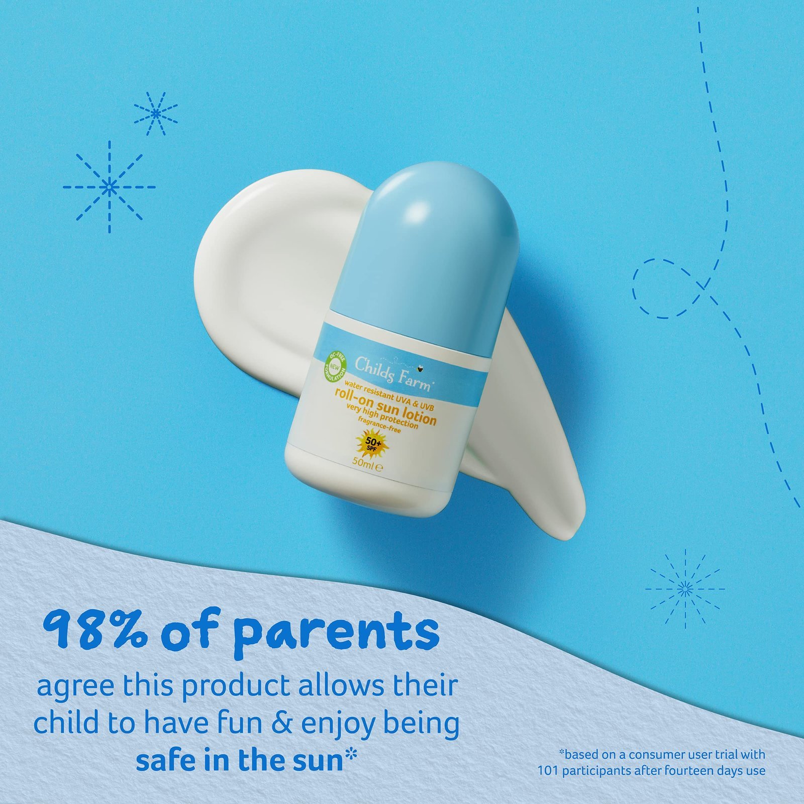 Childs Farm Kids And Baby Sun Lotion Roll-On SPF 50plus Water Resistant UVA And UVB Very High Protection Suitable Dry, Sensitive And Eczema-prone Skin 50ml, White, 1, 85.65 Grams