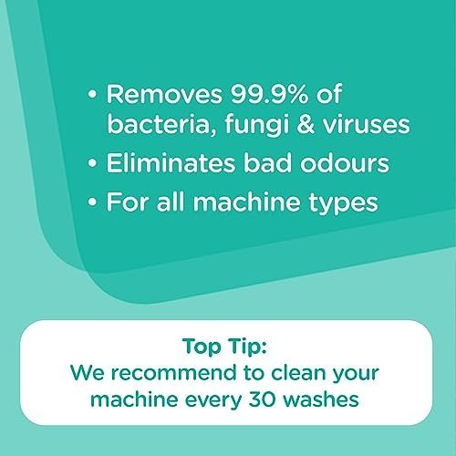 Use every two months or after 30 cycles to remove unpleasant odours to keep your washing machine hygienically clean and fresh.