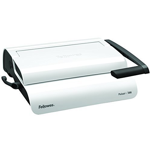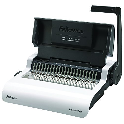 Fellowes Binding Machine – Pulsar+ 21-Hole, 300 Sheet Manual Paper Punch Comb Binder Machine with Starter Kit 10 Comb Bindings – Ideal for Small Office Use – White/Grey