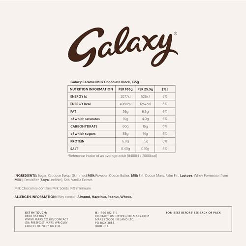 - One 135g Galaxy Caramel & Milk chocolate bar