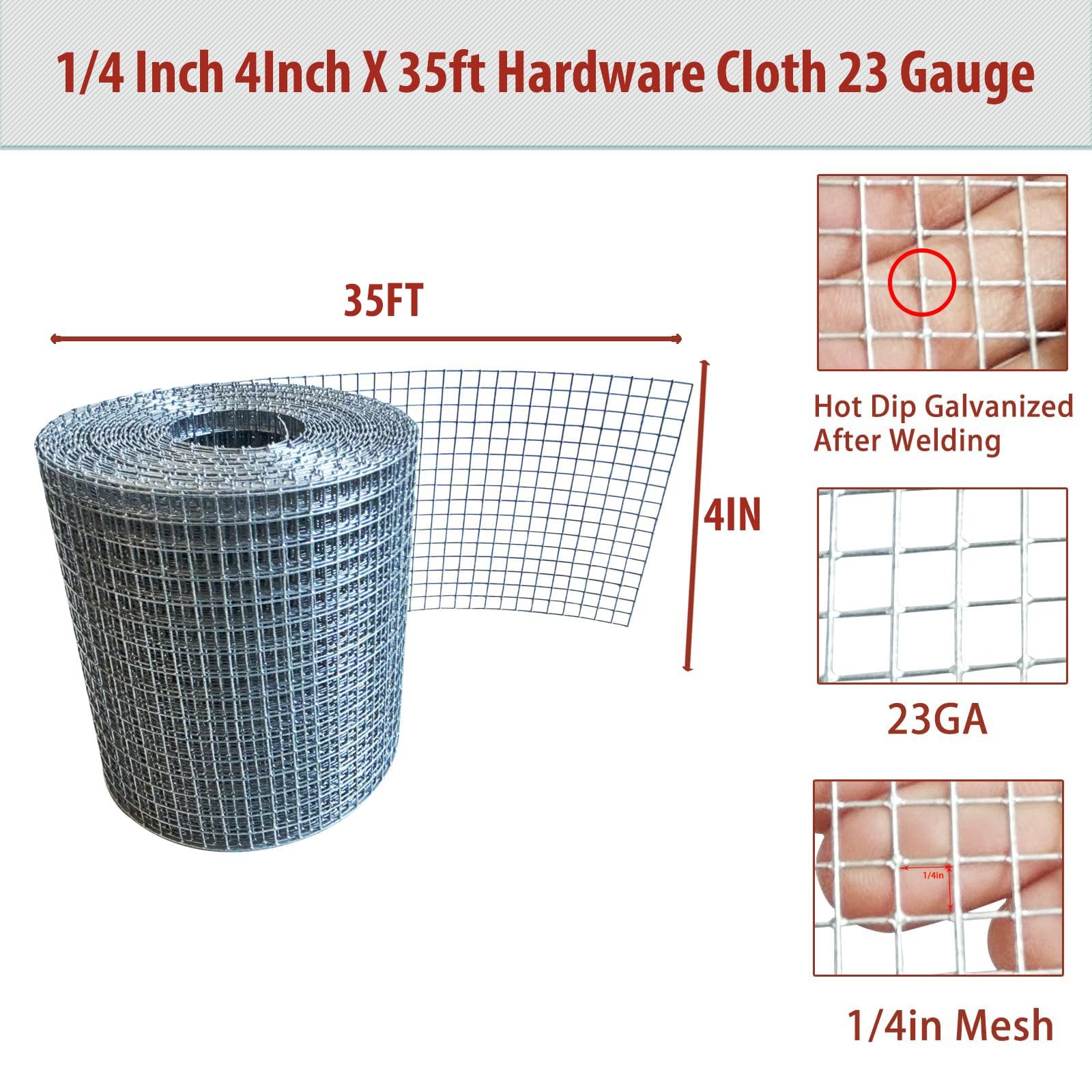 - ATTENTION: Please Read: Our hardware cloth is 35 feet long, 4 inches wide, wire 23 gauge thick and holes 1/4 inch. Please confirm the size before placing the order