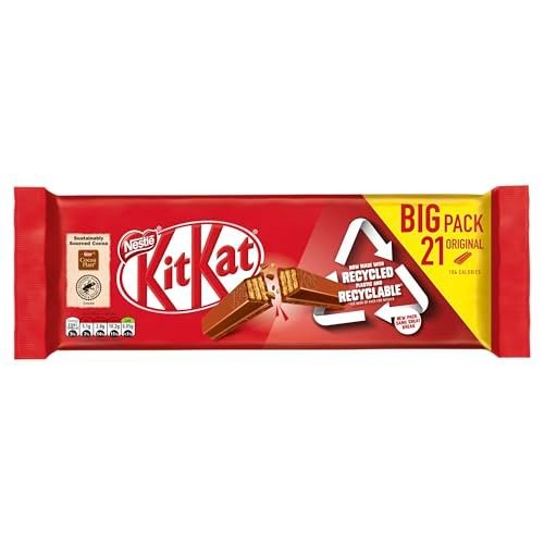 Kitkat 2 Finger Milk Chocolate Biscuit Bar, 20.7g and 21 pack. A delicious chocolate bar of 2 fingers of crispy wafer biscuit covered with smooth milk chocolate. With 104 Calories they’re a great treat to enjoy during your break.