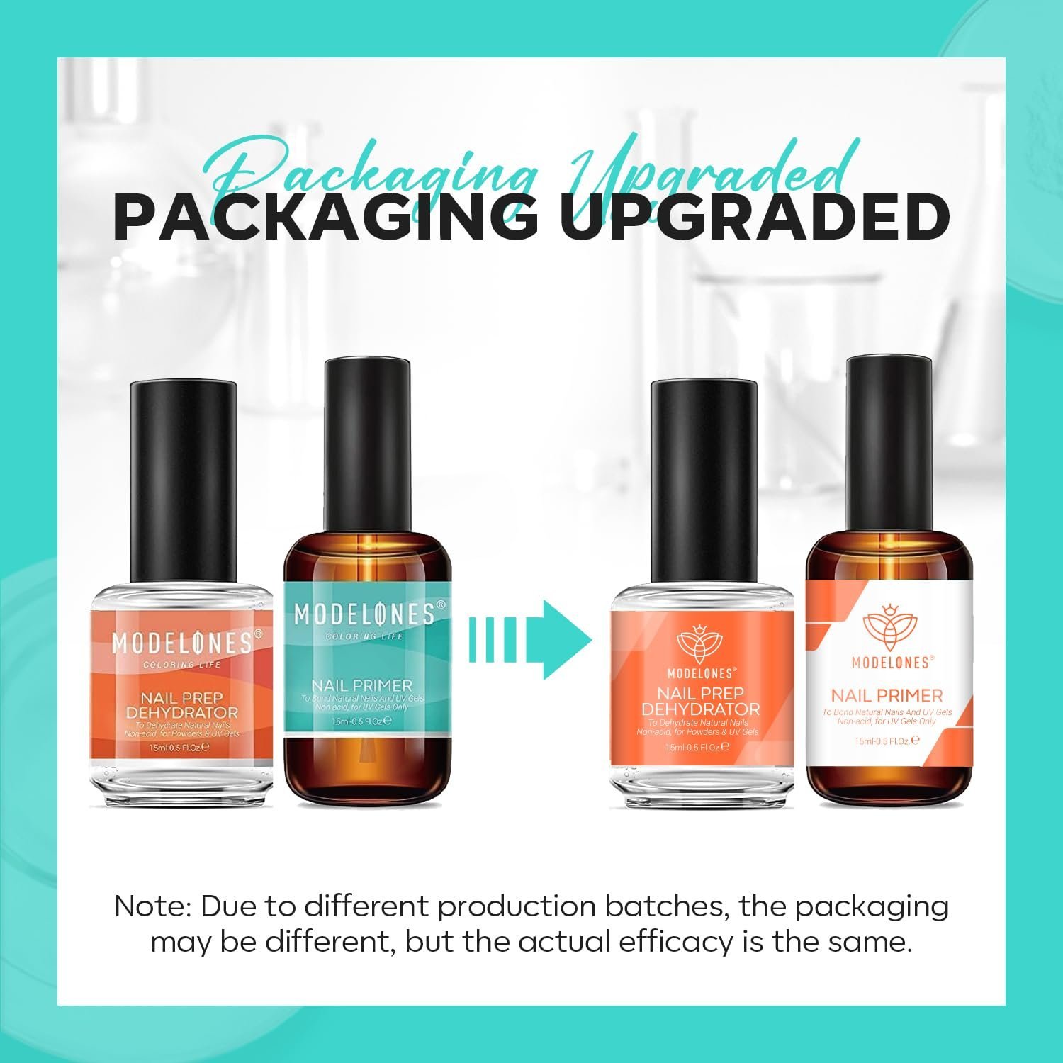 Modelones Professional Gel Nail Polish Primer, 2Pcs 15ml Acid Free Natural Nail Prep Dehydrate, Air Dry Superior Bonding Primer for Acrylic Powder Supplies Set