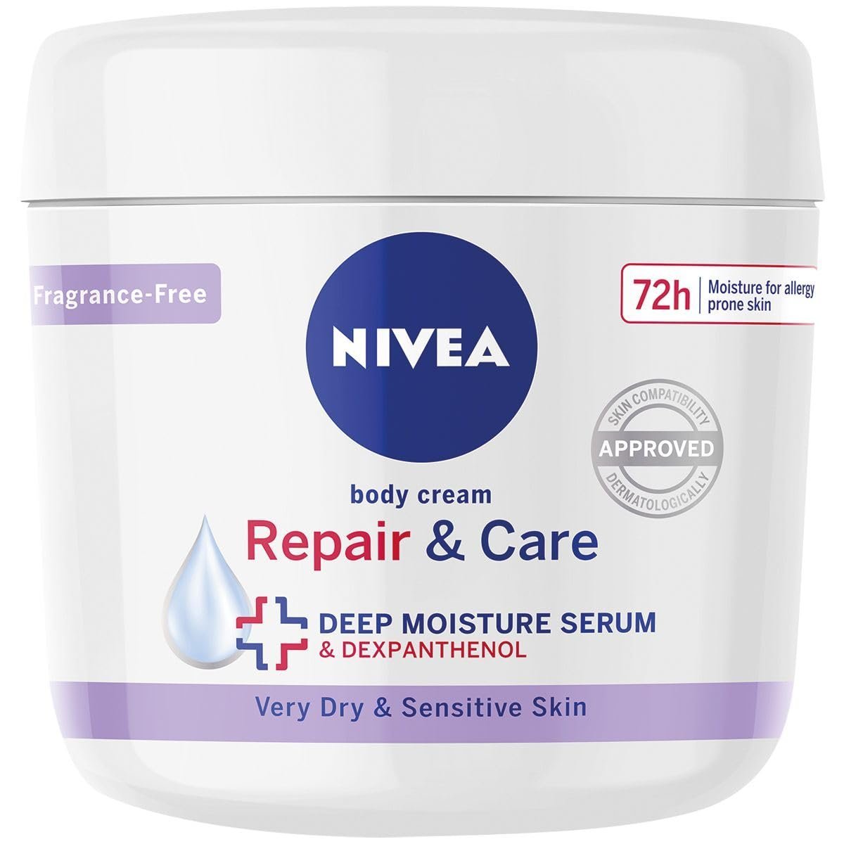 - Repair and care: NIVEA’s Repair & Care sensitive moisturiser body cream cares for dry skin and works with the skin’s natural microbiome to keep it hydrated
