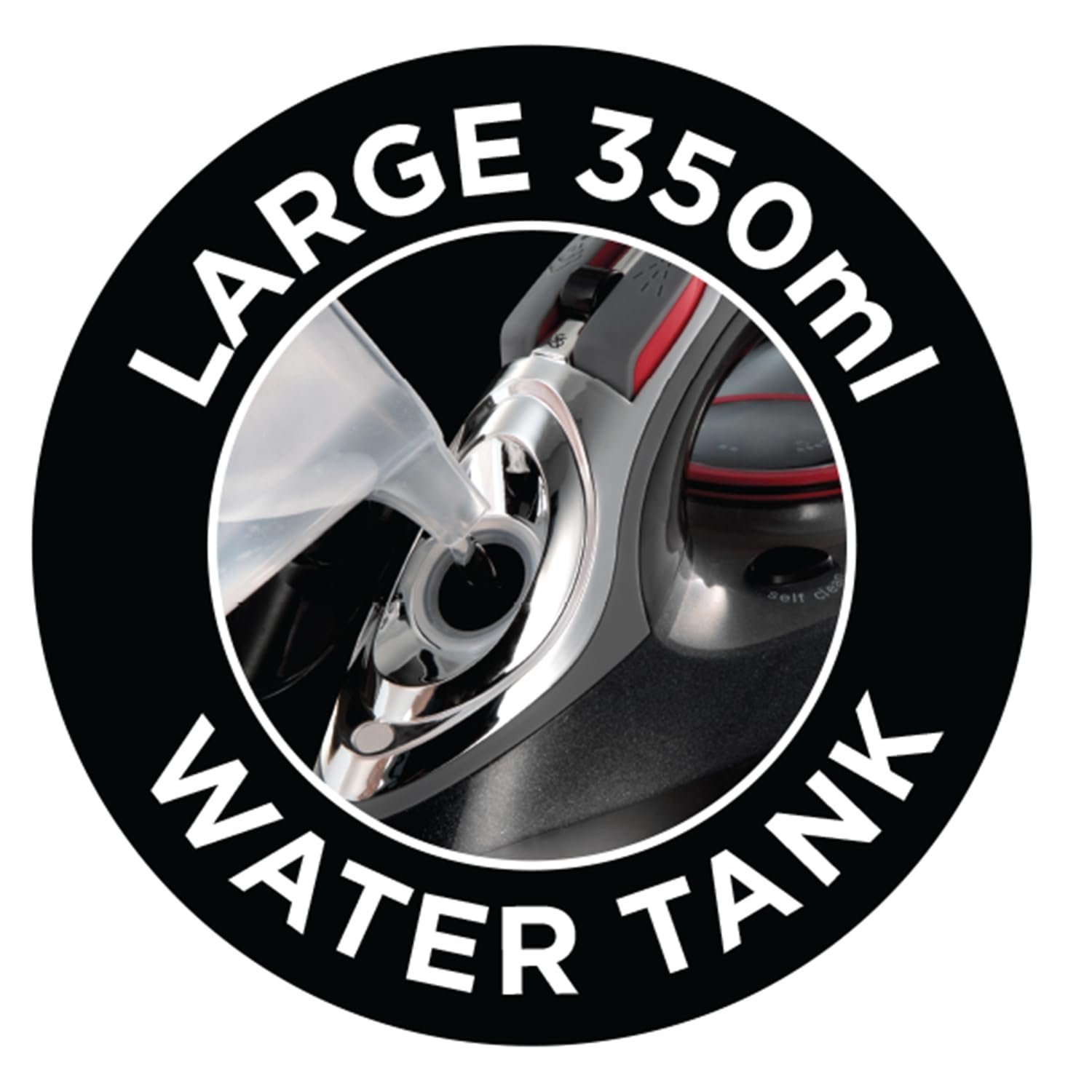 - Prolonging its life and maintaining performance a self-cleaning function will ensure your iron is free from impurities, such as scale. 350ml water tank. Activating if left on or knocked over the automatic switch-off function is perfect for busy households and those constantly rushing out the door
