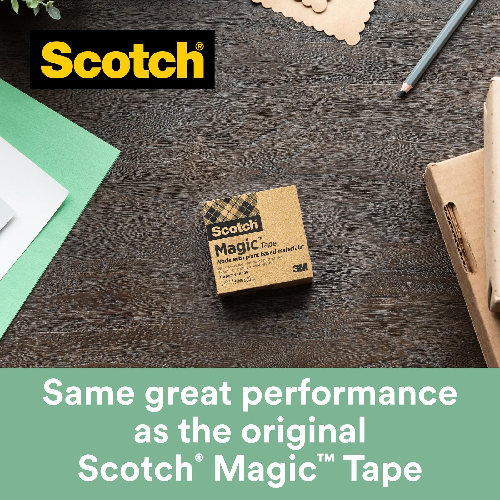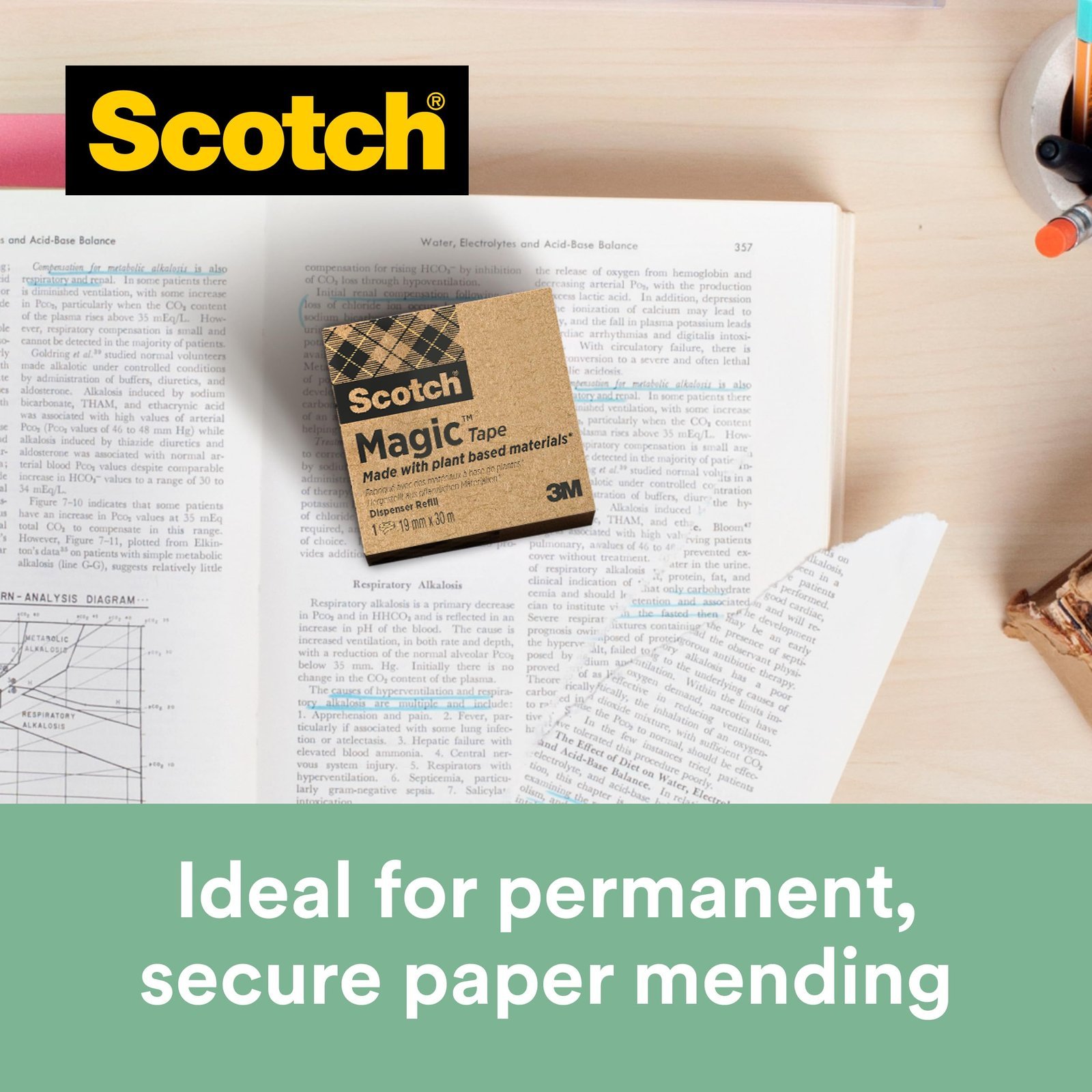- CLEAR TAPE: Invisible when applied to most paper, Scotch Magic Tape made with 66 Percent plant based adhesive stays invisible when scanned or photocopied