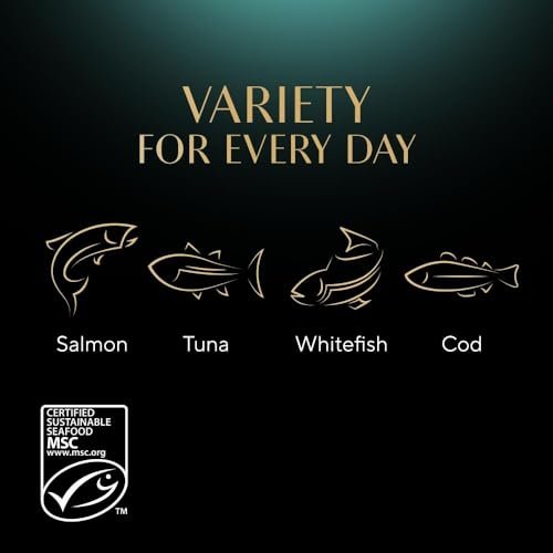 - Multipack with 4 exquisite varieties: whitefish, salmon, cod and tuna pouches in a smooth jelly / without artificial colours or preservatives