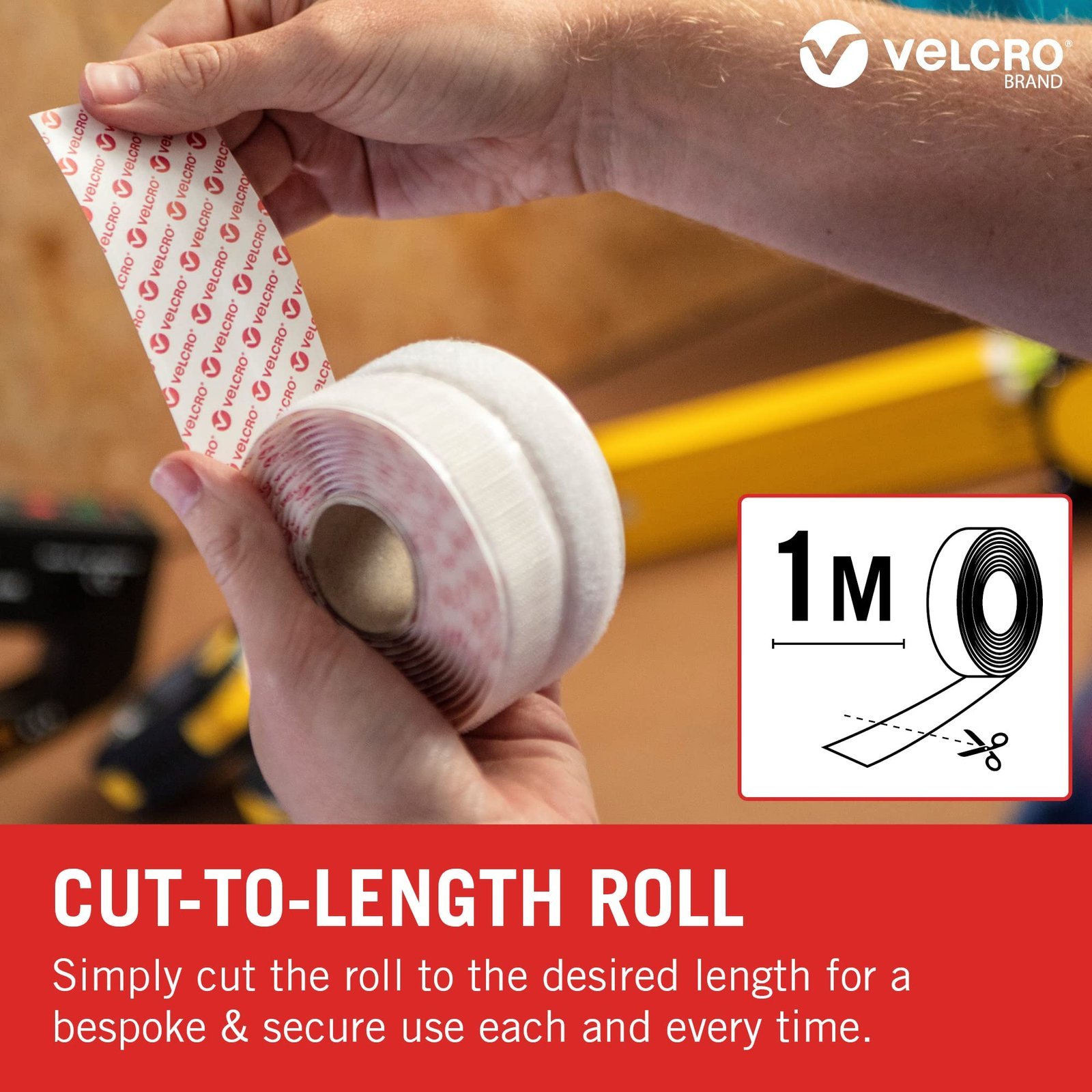 - REUSABLE MULTI-PURPOSE – Keep items such as small tools, electrical appliances and more tidy and secure with hook and loop tape that holds up to 300g per 20x20mm. Use the versatile adhesive fastener roll as mounting tape for tools in the garage.
