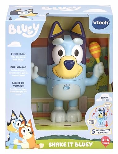 VTech Shake It Bluey, Official Character, Interactive Toddler Toy with Music, Sounds and Phrases from the TV show, Educational Learning Gift for Kids 3, 4, 5 + Years, English Version