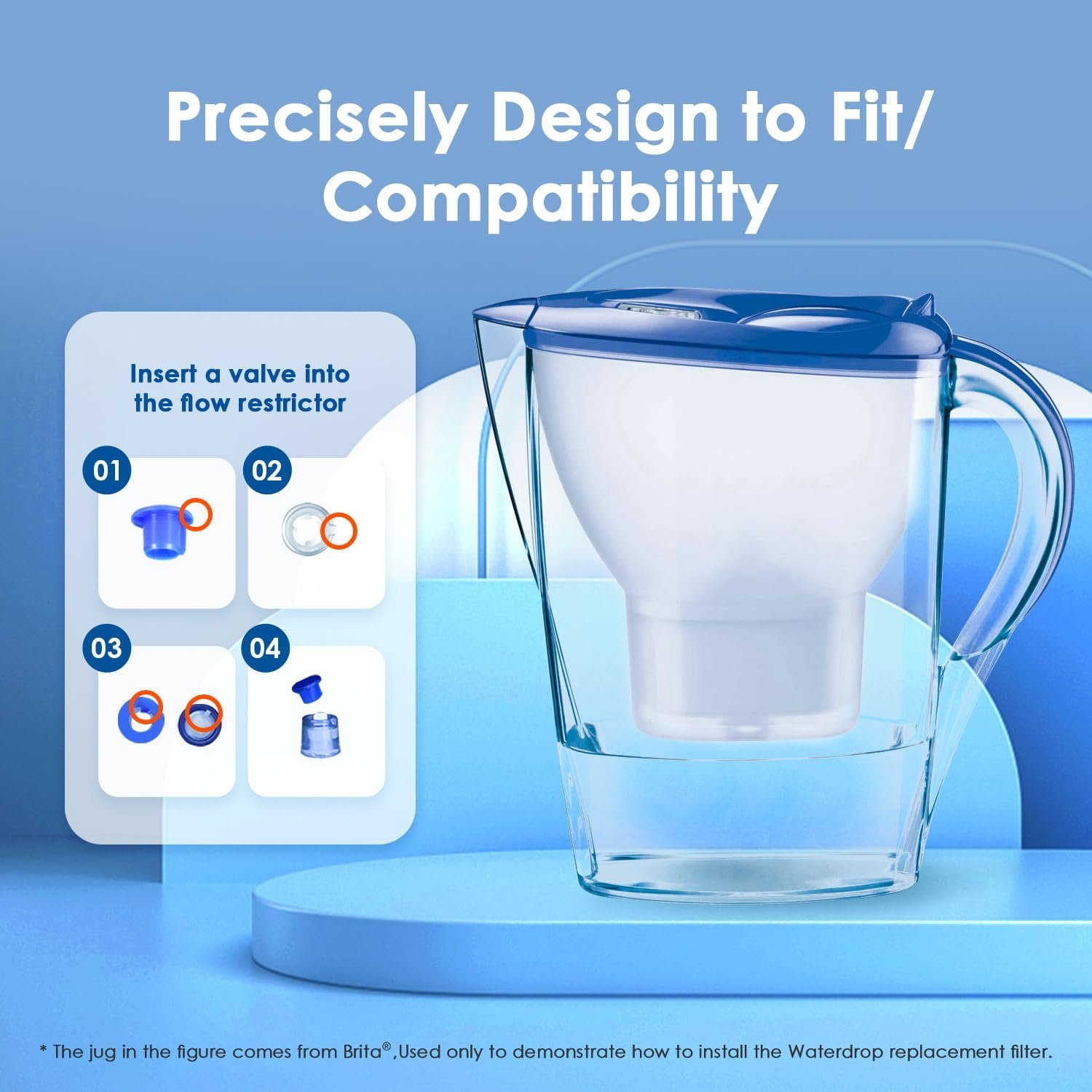 Waterdrop Water Filter Cartridges, Replacement for Brita® Maxtra+® Plus, Maxtra Pro® All-in-1, Compatible with Brita® Marella® Jug, Brita® Kettle, Reduce PFAS, PFOA/PFOS, TÜV SÜD, NSF Certified (6)